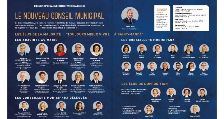 Julien Weil entame donc un deuxième mandat entouré d’une équipe largement renouvelée, avec la confiance et le soutien des Saint-Mandéens.