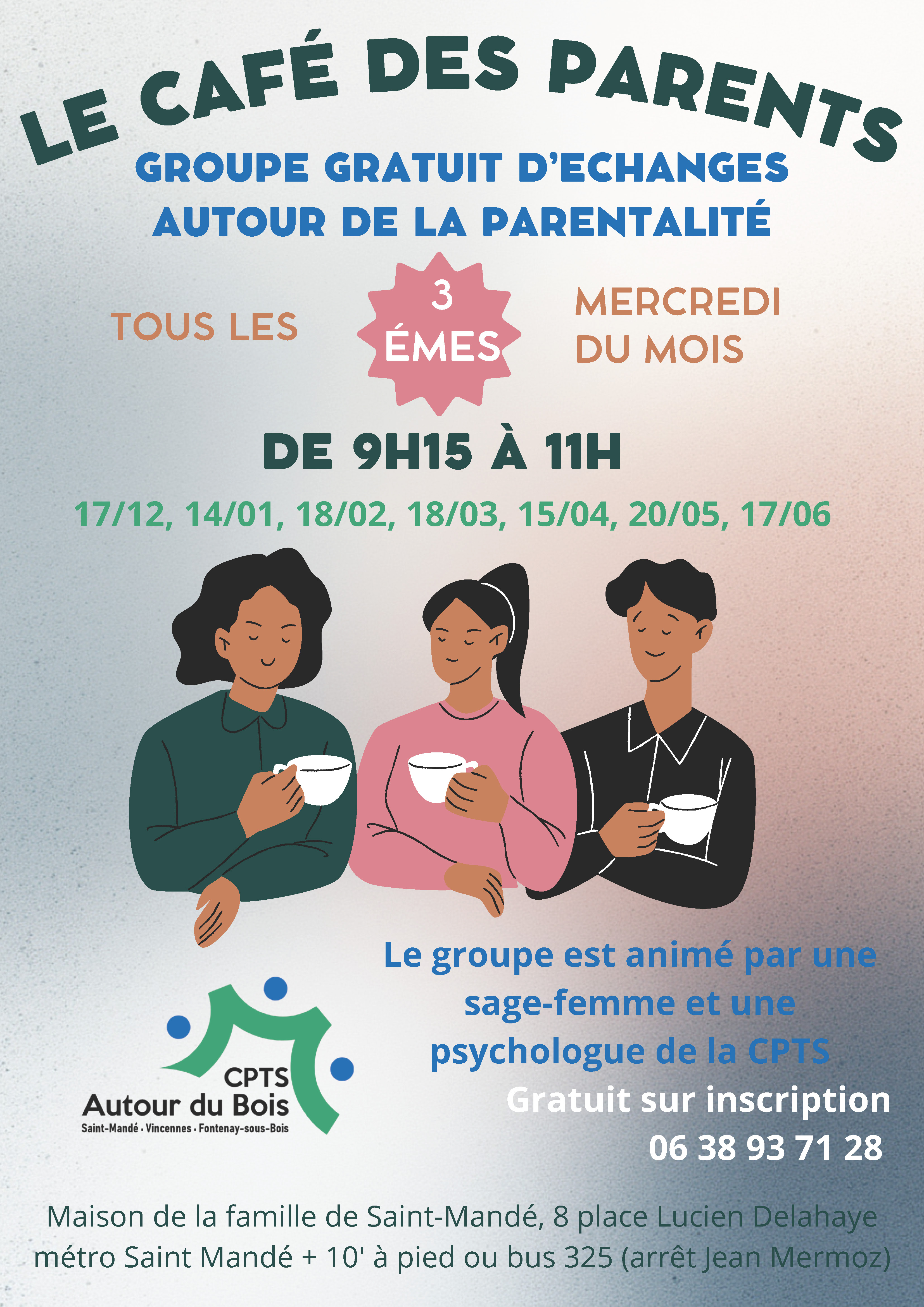 Venez échanger librement avec d'autres parents ! Seul(e), en couple, avec ou sans votre enfant.