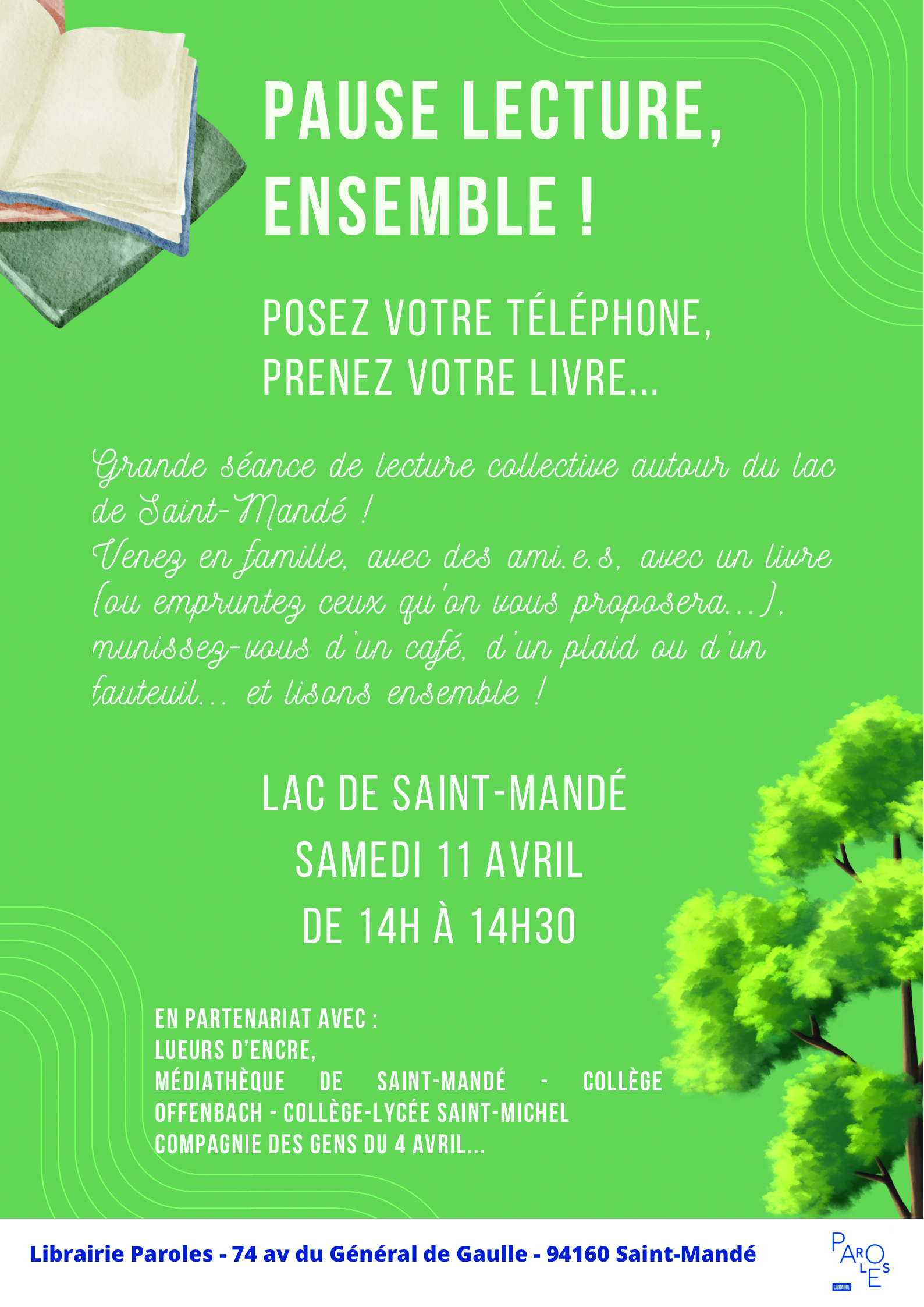 « Lire est un acte tout à la fois solitaire et collectif car, quoi de plus agréable que de partager nos lectures. L’idée de notre Pause lecture, ensemble est de rassembler toutes celles et ceux qui ont envie de prendre un moment pour rêver, voyager, se ressourcer avec un livre. Réveillons ensemble l’énergie qui sommeille en nous et qui ne demande qu’à se libérer lorsqu’on lit. Venez très nombreux ! »